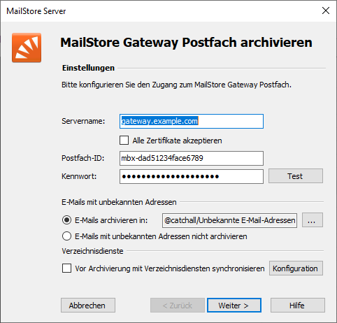 - Vorlage:MailStore Gateway Postfach Einstellungen